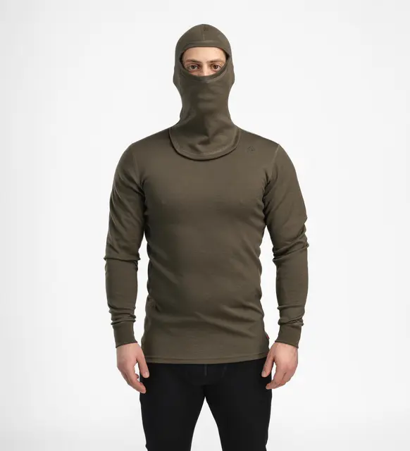 WarmWool Hoodsweater w/zip er en ulltrøye med en treveis hettefunksjon hvor man kan velge mellom rund hals, polo eller dekke til hele hodet med den integrerte balaklavaen. I front på balaklavaen er WoolNet intergrert for å forhindre isdannelse, den har toveis glidelås på brystet for å kvitte seg med overskuddsvarme, og tommelhull ved håndleddet. Den har en smal passform og egner seg godt som baselayer på kalde dager, med ribbestrikkede felter i siden for bedre komfort og bevegelse. Du kan putte hendene i en varmelomme med glidelås på magen og du har enkel tilgang til smartklokken med en praktisk klokkeåpning på venstre arm. Dette er virkelig plagget for de kalde dagene.