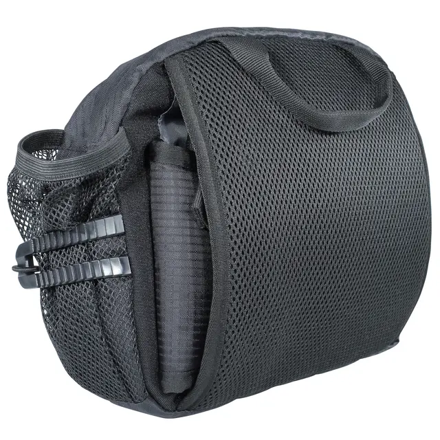 Romslig rumpetaske med plass til en flaske på hver side. Behagelig hoftebelte. Hoftebeltet kan skjules på baksiden og vesken kan bæres i stroppen på toppen. Med refleks.